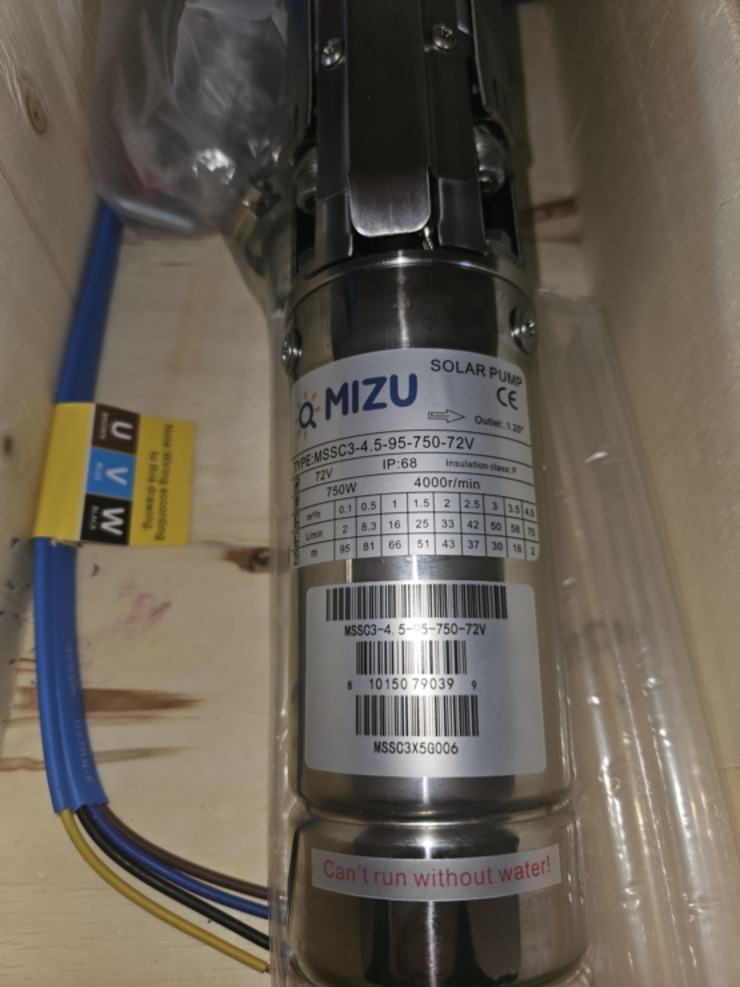 Bomba Solar Sumergible Mizu 3" (impeller inox.) - Q4.5/95m/750w/72V (MSSC3-4.5-95-750-72V)