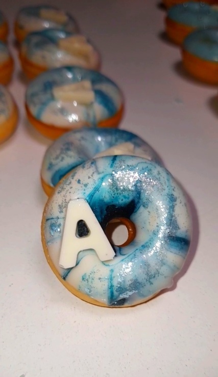 Mini donas Marmoleadas a elección del cliente en sabor, colores y cantidades.