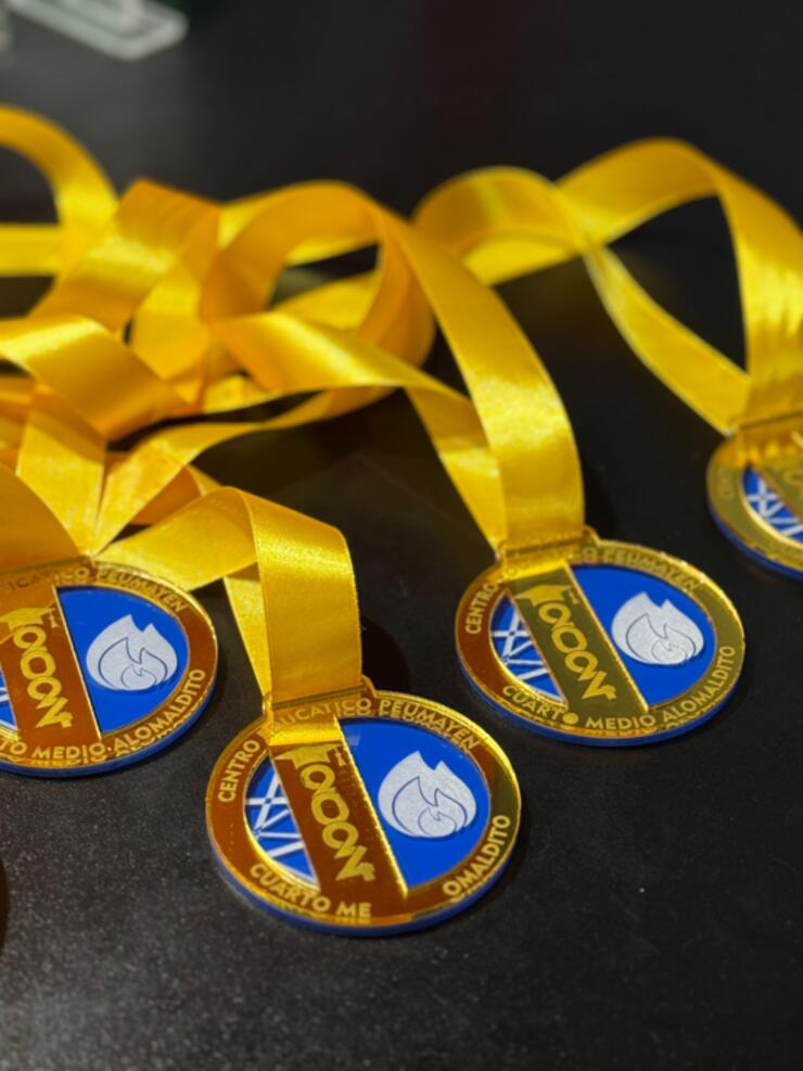 Medallas acrílicas personalizadas con detalles grabados en distintos formatos. Colores metálicos y a elección